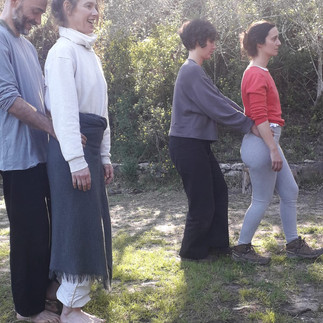 Así empieza, en el jardín zen de la Quinta Chi al sol al lado del lago de nénuphares et grenouilles et tourtues, un arbusto muerto dando sus primeras últimas flores olé! Yael Karavan bailó ahí acompañando la magía del lugar, site specific con la caída de cada rayo de luz. Sara Pons se pusó a correr en círculos, perseguida por las percusiones de Joan. El gato vinó a bailar conmigo este « start in the end », entré en un arbol en ruina y cargué mi ataud con Manu Chao. En Eúropa coronamos la mente, es culpa de Descartes « cogito ergo sum » ? Pero el arte libre viaja por otros cielos, los del alma, la poesía como butō no se vive desdel intelecto, sino desdel cuerpo almico. En el dojo nos reunimos en un suelo de madera excepcional, con los cantos de asnos y caballos saco las fotos de Hijikata, de Ohno Kazuo y Yoshito, de Mishima y nombro forma, nombro estado. Dialoga con tu límite. Precuerpo - nacimiento - next. Viajamos juntas desdel butō-fū de Hijikata, al weather del cuerpo, pasando por ruinas. Una hogera nos calma el alma, nos junta en nuestras oscuridades, cantos, palmas. Que es una jam de butō, me preguntan. Es juntarnos para bailar, respondo. Mientras tanto se crea en tercios, cada una su grupito. Con chispas en los ojos nos miramos como hermanites que se preparan sorpresas el día de sus cumpleaños. Y show time ! Un pino se transforma en mar, unos troncos en nuves, unas caras en manos-pies. Las formas quietas, keep! Piensa en mi y renacen en pajaros. O son gallinas deseperadas de huevadas? O es un último baile entre día y noche… Poética pura en la oscuridad, un sueño en el bosque de cuerpos danzantes, lunas que viajan hasta la piel desnuda . Party time! despedidas, abrazos, risas, lagrimas, libros, danzas locas, gritos. Así fue, un renacimiento en la danza, un renacer en butōS. Que es el fín ? Es lo que pasó. MJ Arigatō a las 40 almas con quienes compartí este retiro fantastique. Arigatō gozaimasu a la iniciadora, organisadora, productora, bailarina y creadora IRENE darling. Merci Sara y Yael !!!! Es muy rico compartir nuestros butōs. Con ganas de más, de volver, de repetir, de reecontrarnos !!!! Que danzemos vivos para morir y renacer hasta siempre.